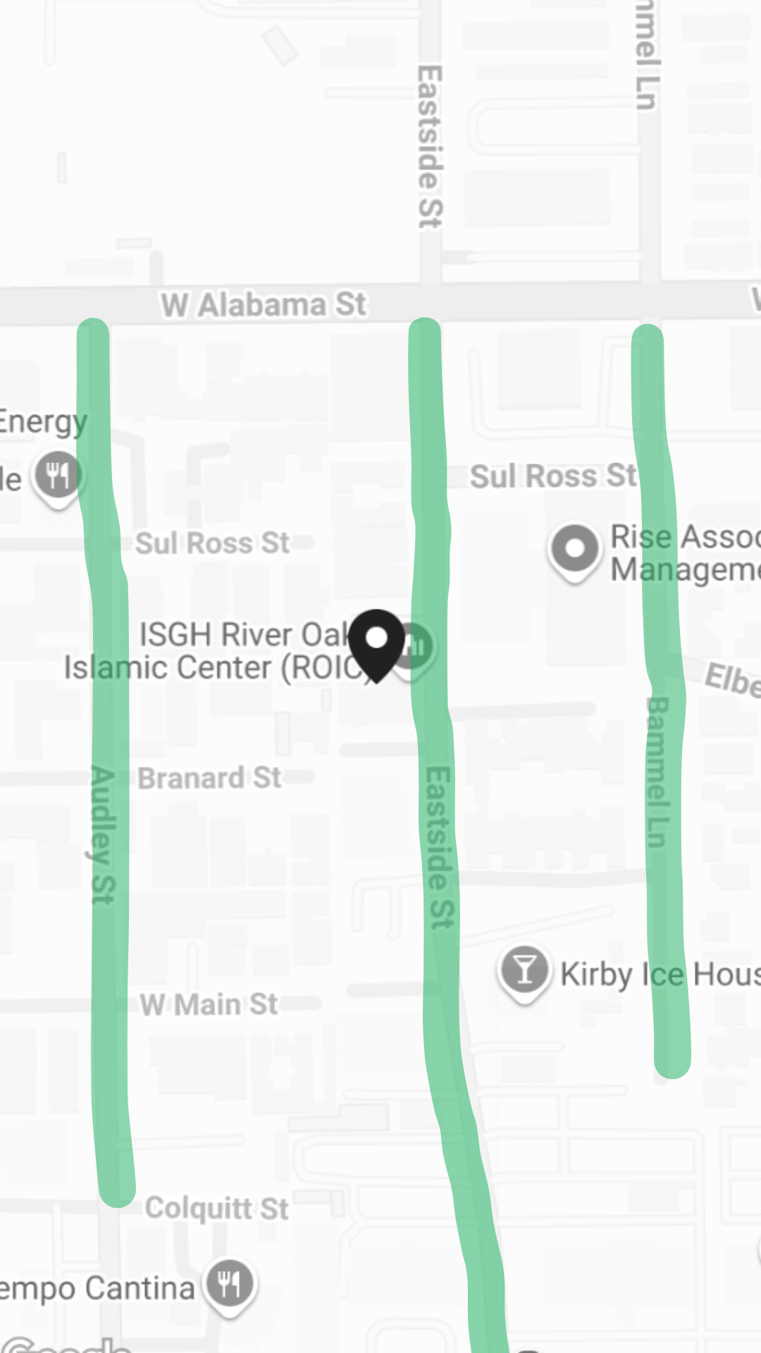 Audley St, Eastside St, and Bammel Ln.